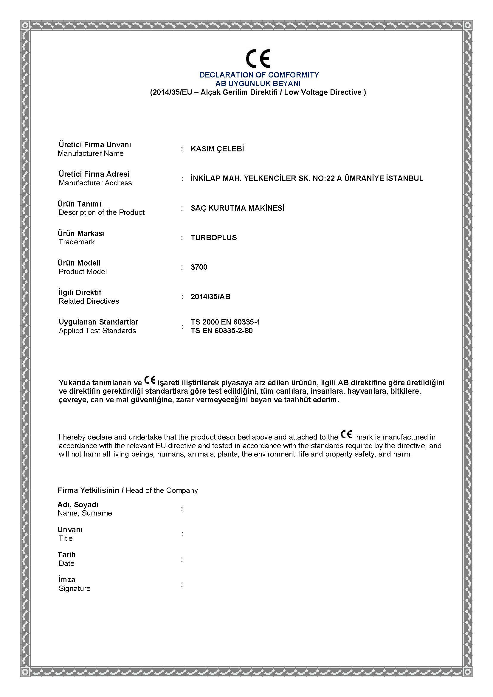 SERTİFİKALARIMIZ: